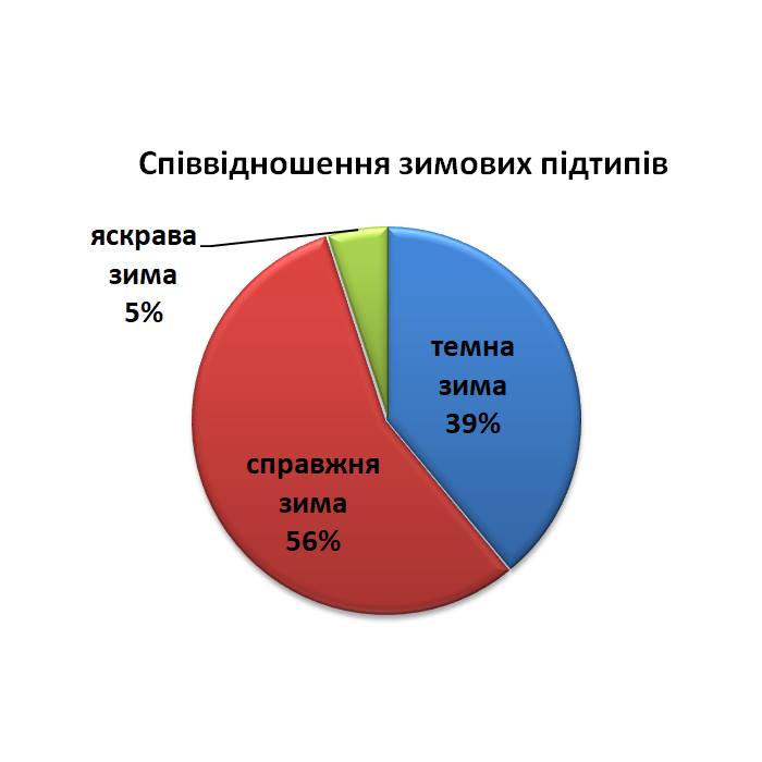 Серед зимових підтипів ситуація така — «справжня зима» — 56%, «темна зима» — 39%, «яскрава зима» — 5%.
